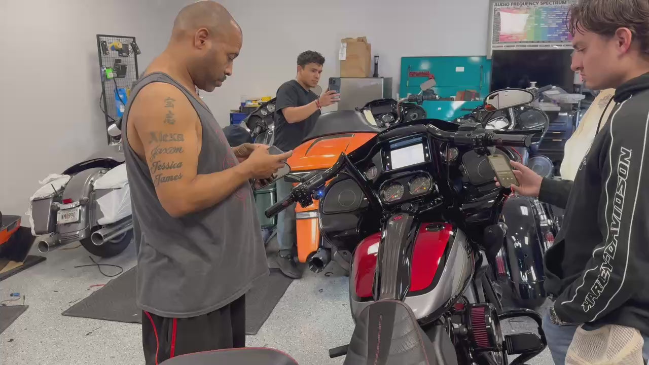 Harley Davidson Handlebar mount Remote Bass Level Control. Must specify wich Mono Block Amplifier you are controling. SOUNDIGITAL, CICADA, Mmats LSX2000 - 12000 V1 or V2. These modules are completely potted to protect the electronics from getting wet therefore completely weather resistant. Remote Bass Level Controls will not interchange with each other. Mmats V1 and V2 will not interchange with each other. For an additional $15.00 we can personalized your Remote Bass Level Control with a laser marked knob. These come with mounting hardware and 3m(9.84ft) communication cable. PLEASE EMAIL TO VERIFY STOCK
